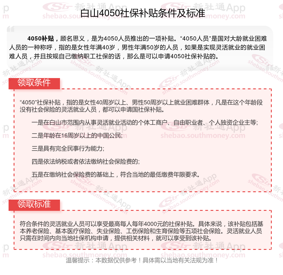 二、2025年白山4050社保补贴标准是多少?条件是什么?