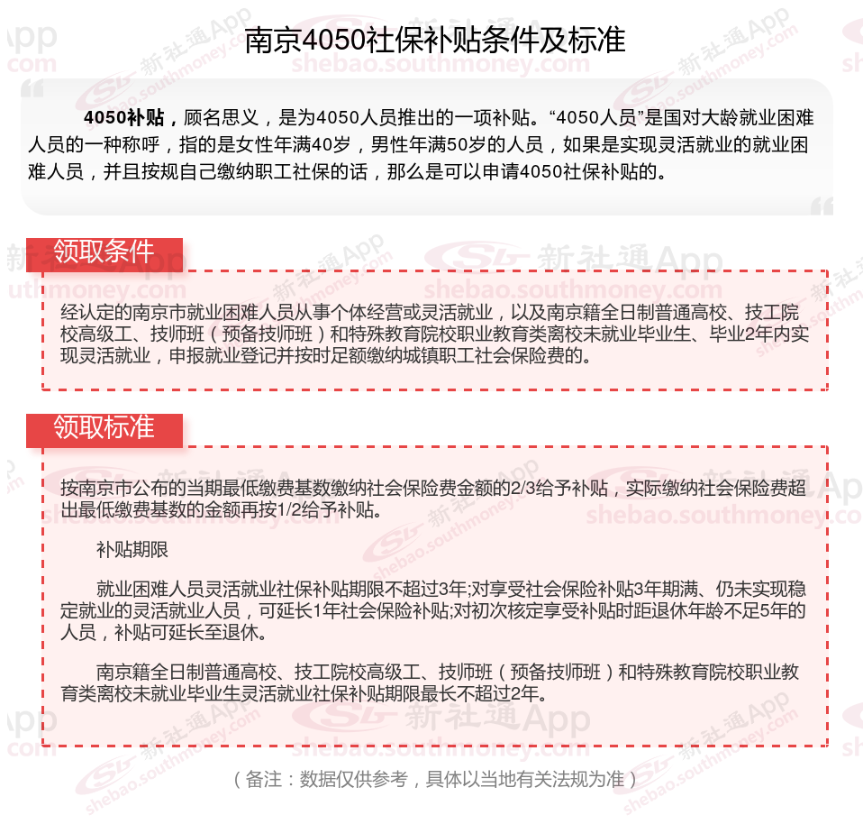二、2025年南京4050社保补贴标准是多少?条件是什么?