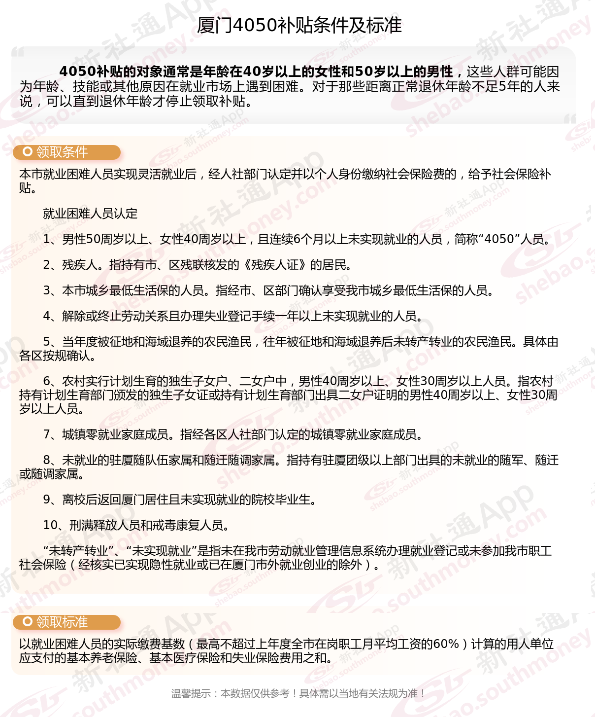 2025厦门4050补贴主要针对的是年龄在40岁以上的女性和50岁以上的男性,这些人群通常因为年龄较大而面临就业困难。