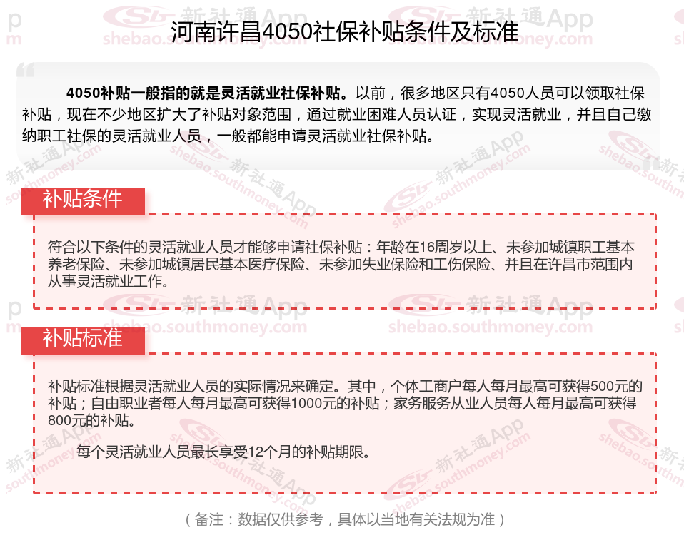 二、2025年河南许昌4050社保补贴标准及条件(4050社保补贴多少钱?)