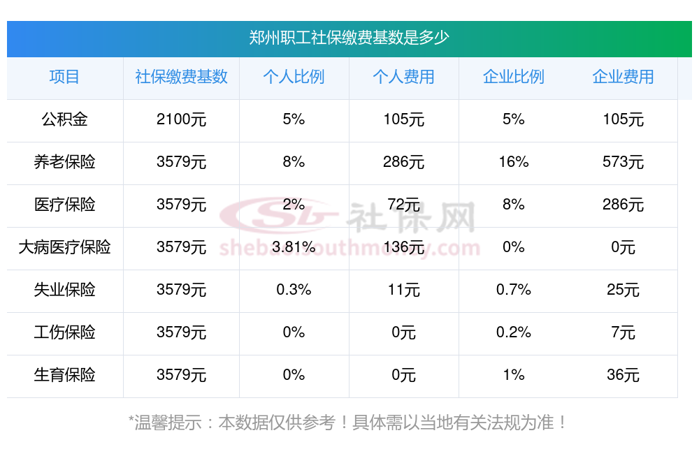 郑州2025年社保缴费个人和公司各承担多少?下表是2025年郑州社保费用明细参考,新社通app-社保缴费查询工具提供的最新数据如下: