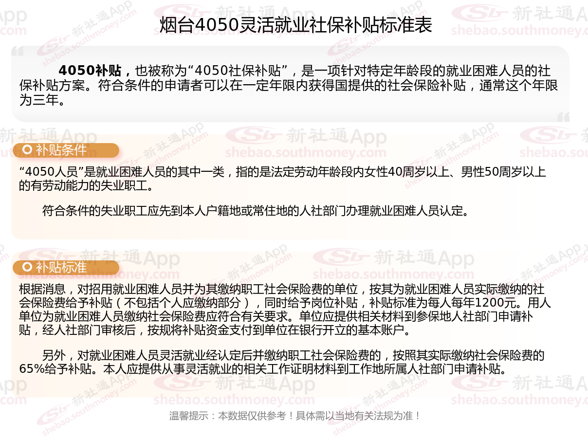 二、2025年烟台4050社保补贴标准及条件(4050社保补贴多少钱?)