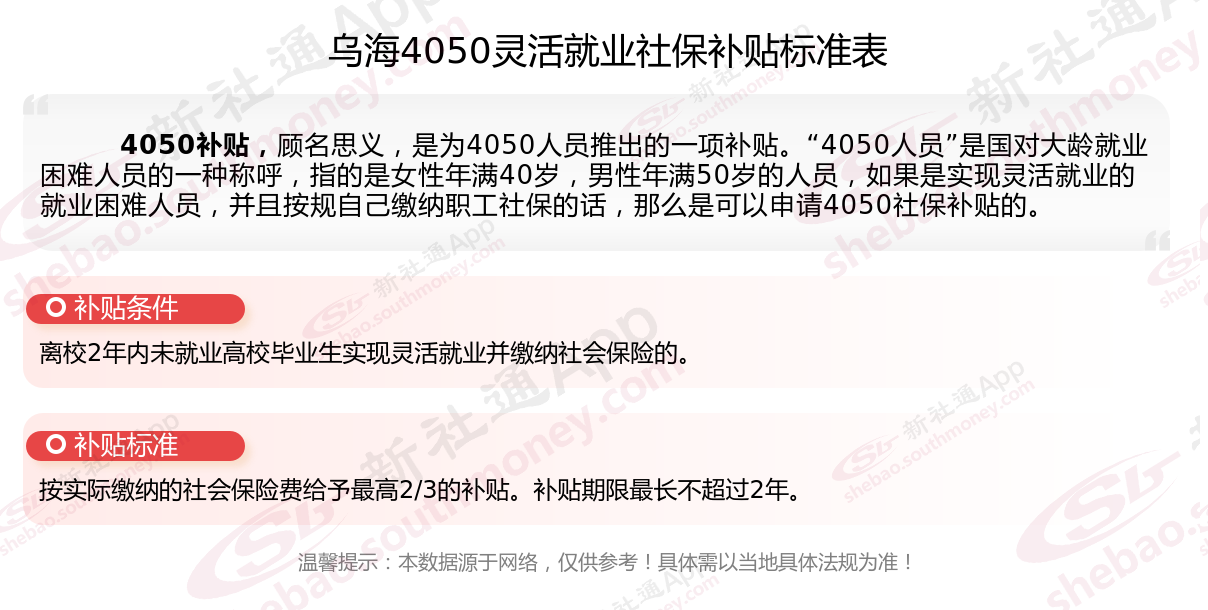 二、2025年乌海4050社保补贴标准及条件(4050社保补贴多少钱?)