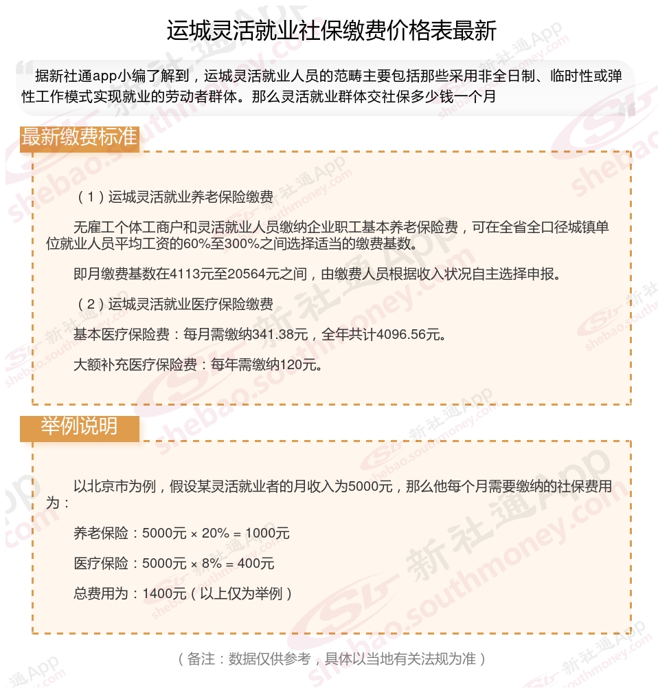 据新社通app数据显示,运城灵活就业养老缴费基数明细如下: