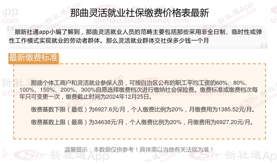 以上就是那曲灵活就业社保缴费的全部内容,数据及内容供参考!希望对你有帮助,欢迎关注新社通解锁更多社保专业资讯。