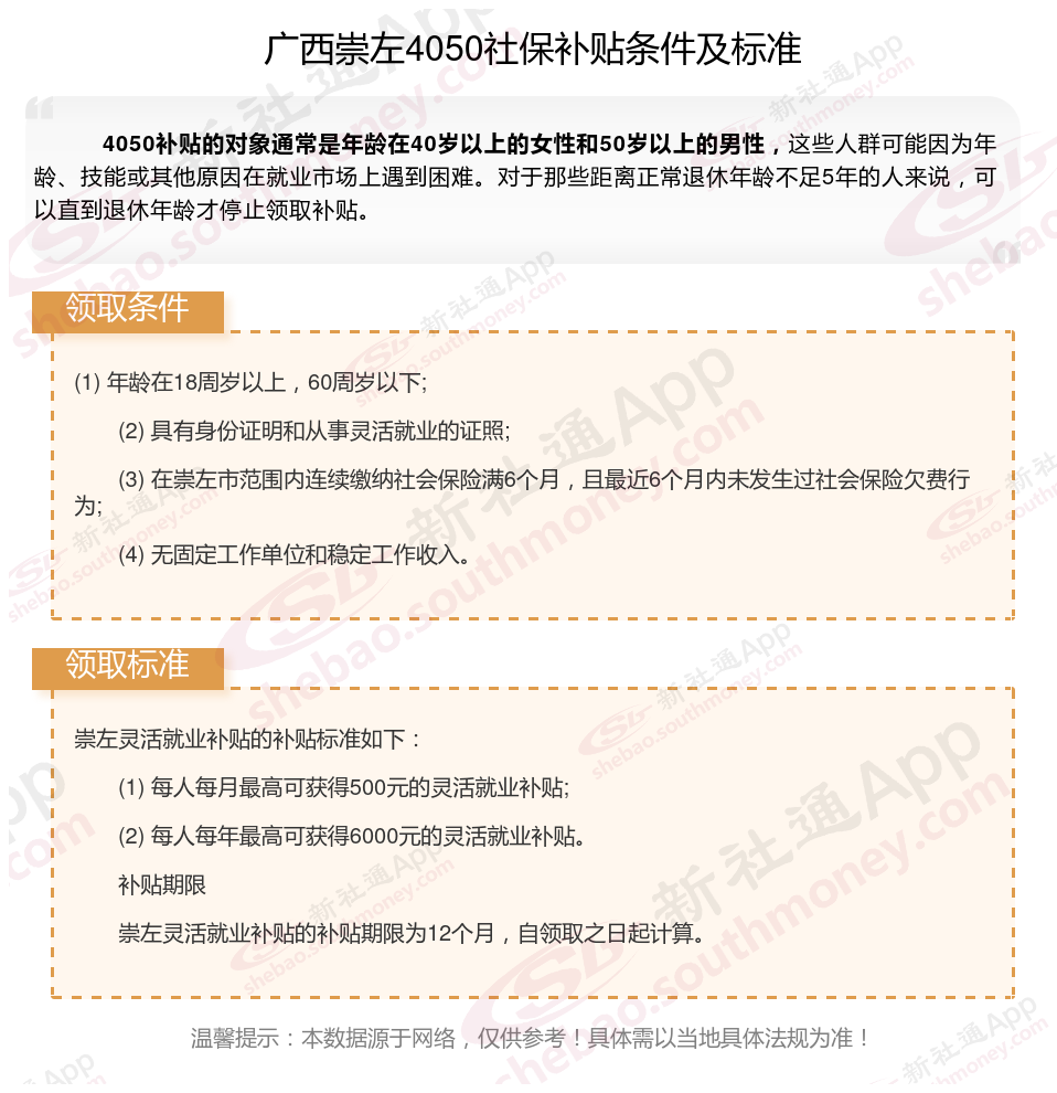 2025广西崇左灵活就业4050社保补贴是一项面向特定年龄段的就业困难人群的社会保险补贴。