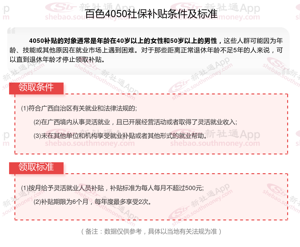 一、2025年百色4050社保补贴新规2025年百色4050社保补贴标准是什么,需要什么条件?