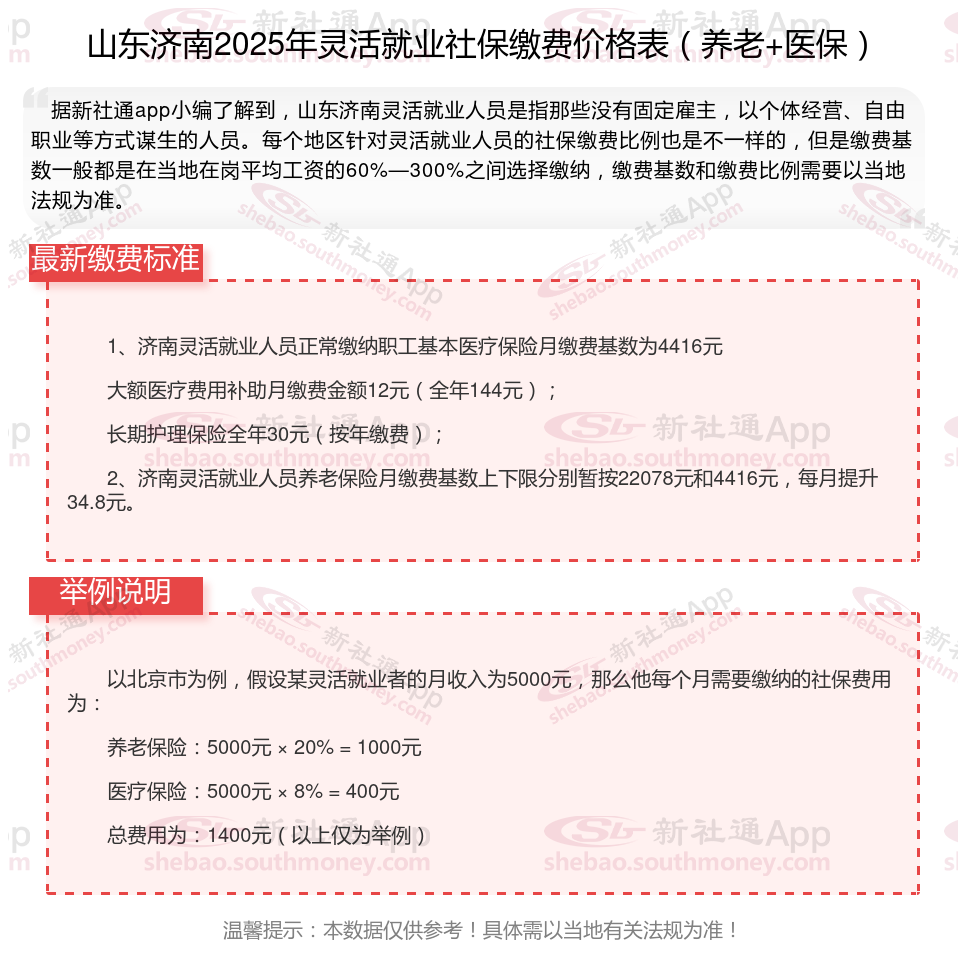 二、山东济南2024-2025年灵活就业社保缴费基数、比例最新消息