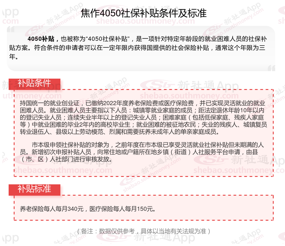 二、2025年焦作4050社保补贴标准是多少?领取条件是什么?