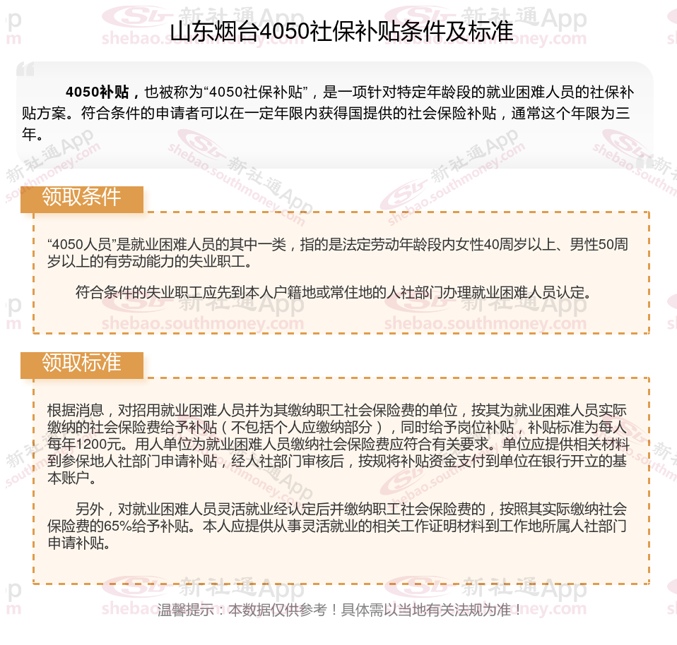 二、2025年山东烟台4050社保补贴标准(山东烟台4050灵活就业人员补贴标准是多少钱?山东烟台2025年4050补贴新规能领多少钱?)