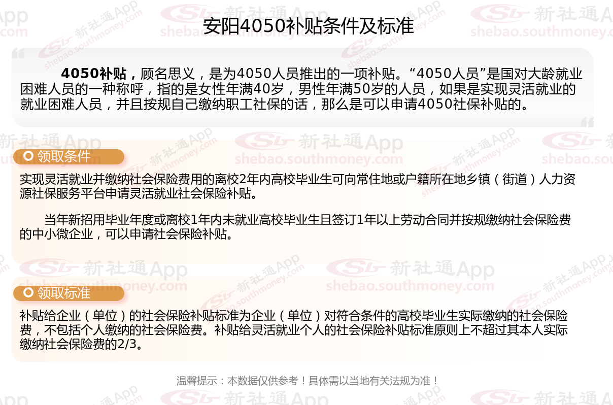 一、2025年安阳4050社保补贴标准,最新领取条件来了