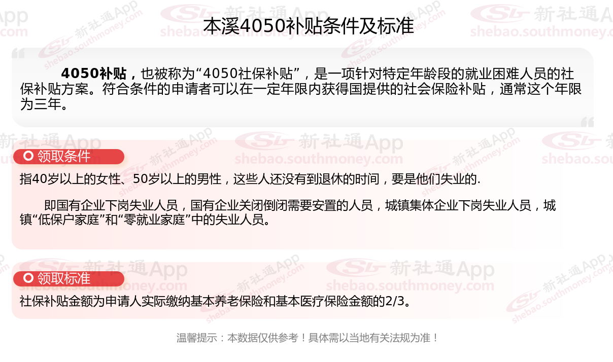 二、本溪4050社保补贴标准及条件2025年最新消息