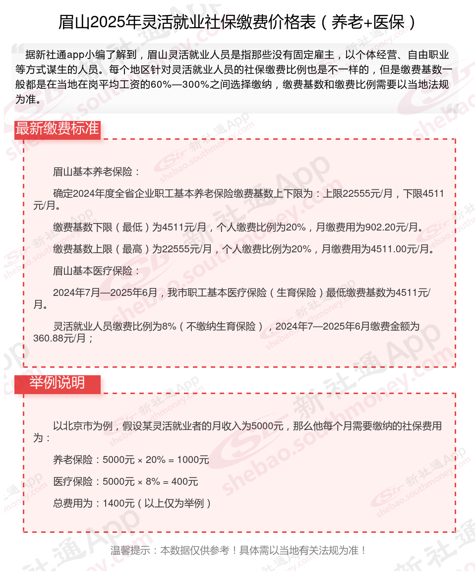 二、眉山2025年灵活就业社保缴费基数及比例最新消息