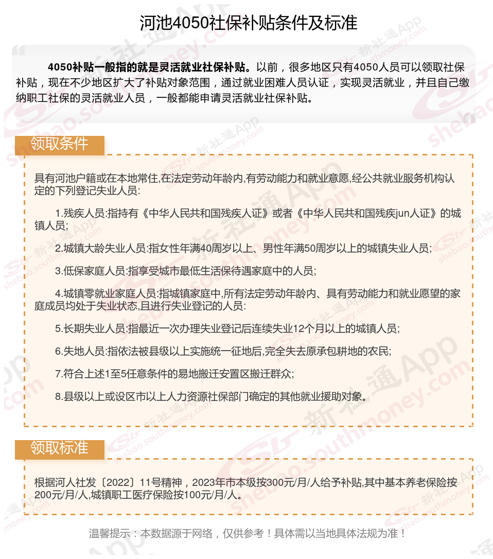 二、河池4050社保补贴标准及条件2025年最新消息