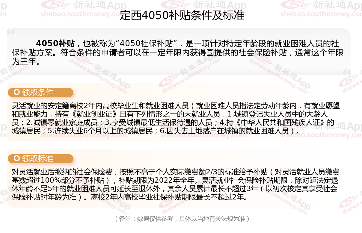二、2025年定西4050社保补贴标准及条件,最新如下: