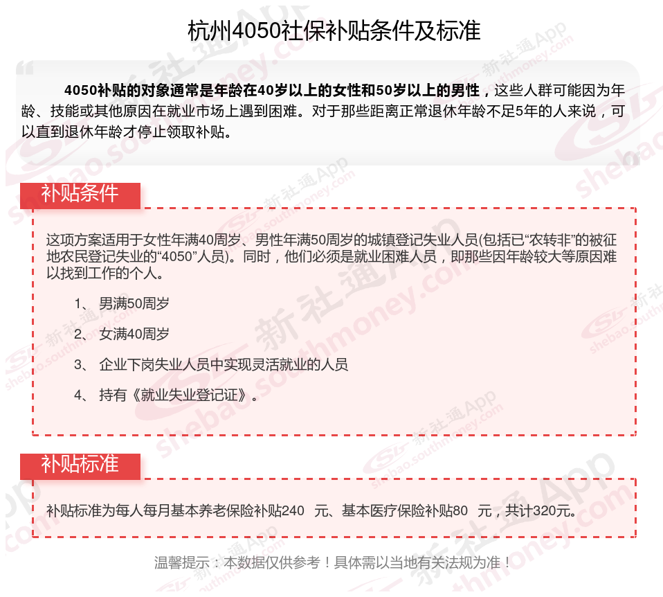 二、2025年杭州灵活就业4050社保补贴标准及条件是什么