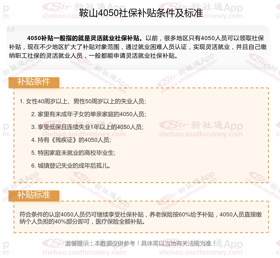 二、2025年鞍山灵活就业4050社保补贴标准及条件是什么?来了解一下