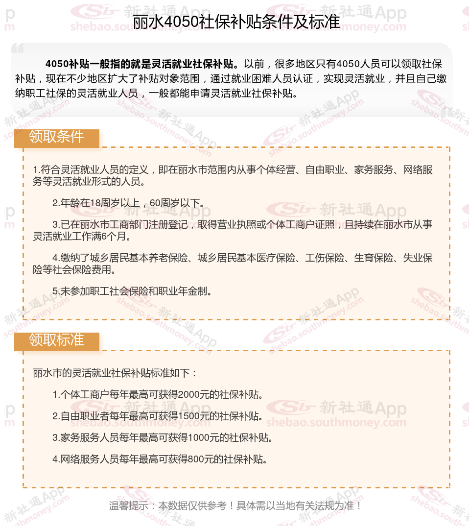 2025丽水灵活就业4050社保补贴是一项面向特定年龄段的就业困难人群的社会保险补贴。