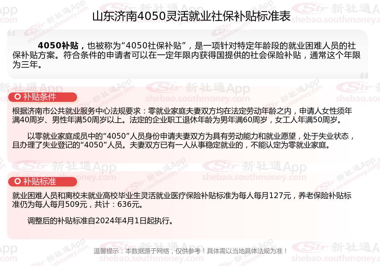 2025山东济南4050补贴主要针对的是年龄在40岁以上的女性和50岁以上的男性,这些人群通常因为年龄较大而面临就业困难。