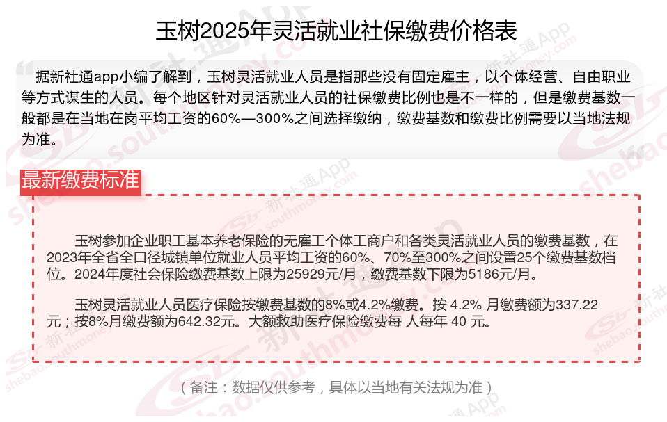 二、玉树2025年灵活就业社保缴费基数及比例最新消息