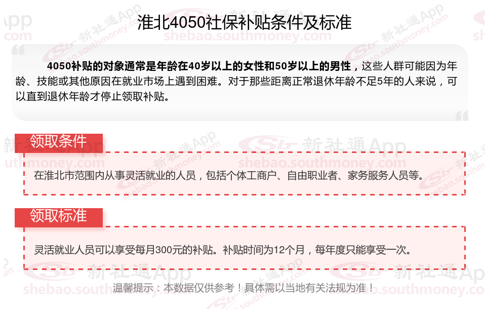 2025淮北4050补贴主要针对的是年龄在40岁以上的女性和50岁以上的男性,这些人群通常因为年龄较大而面临就业困难。