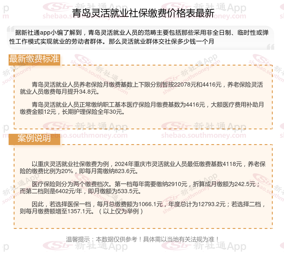 据新社通app数据显示,2024-2025年青岛灵活就业人员养老保险的缴费标准: