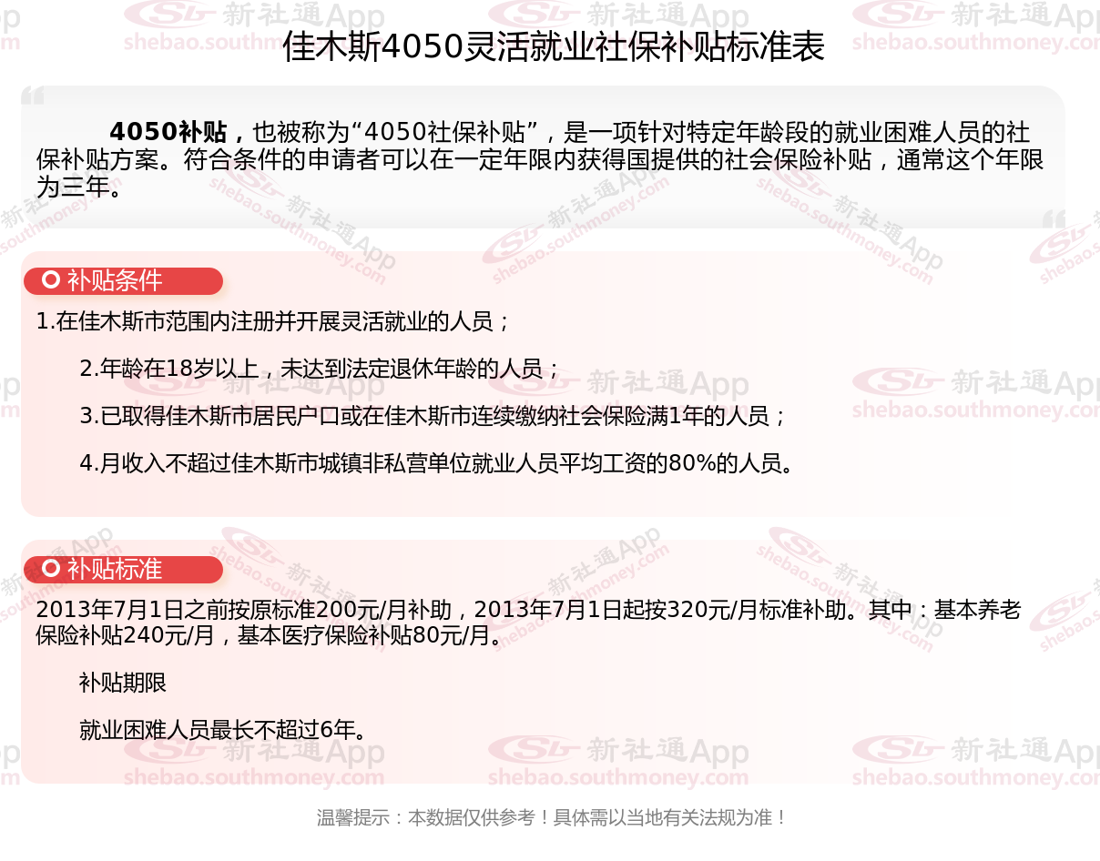 二、佳木斯4050社保补贴多少钱一个月?佳木斯4050社保补贴2025年最新标准是多少?