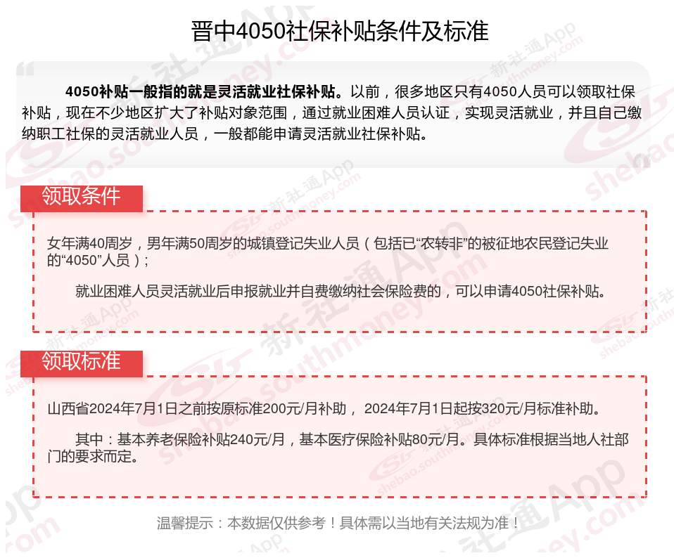 2025晋中4050补贴主要针对的是年龄在40岁以上的女性和50岁以上的男性,这些人群通常因为年龄较大而面临就业困难。