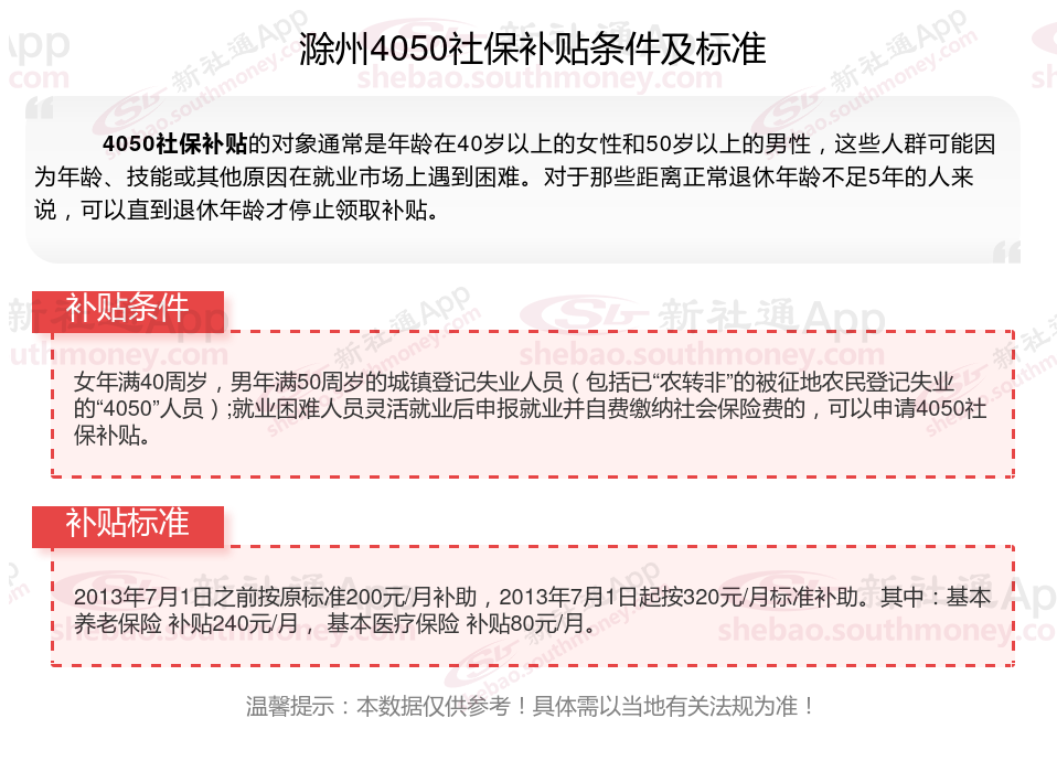 二、滁州4050社保补贴标准及条件2025年最新消息