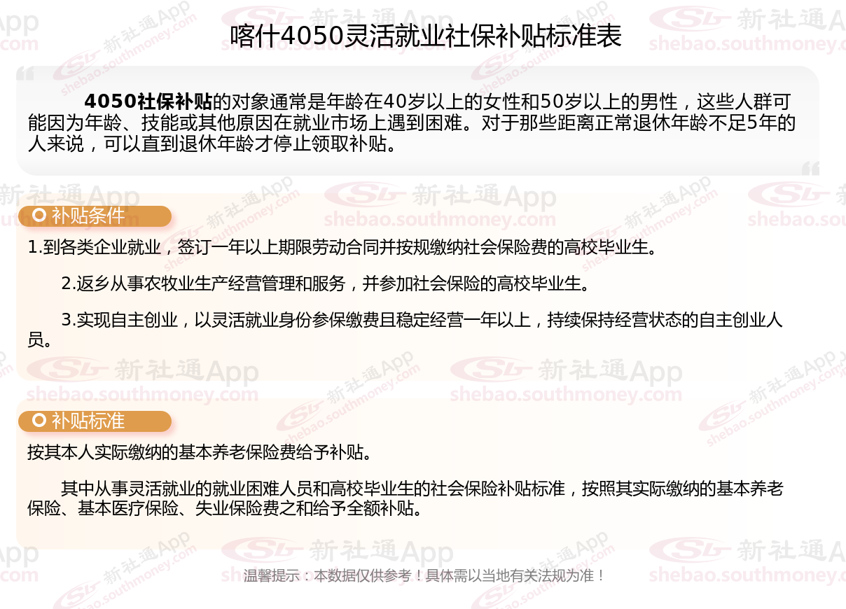 二2025年喀什灵活就业4050社保补贴标准及条件是什么
