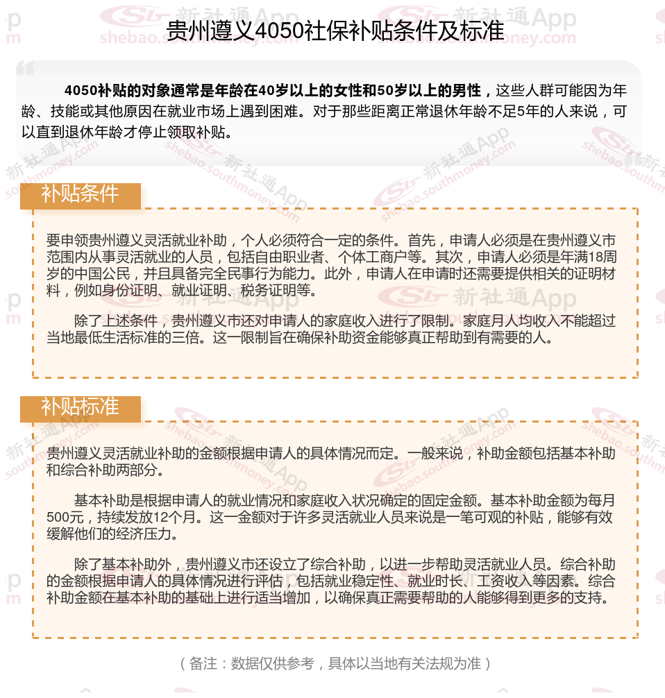 二、贵州遵义4050社保补贴标准及条件2025年最新消息