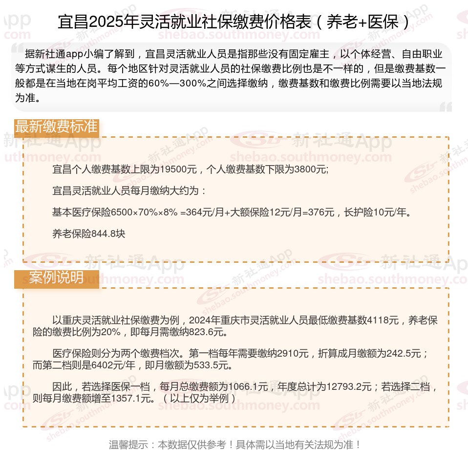 一、2025年宜昌灵活就业人员社保养老+医保缴费标准一年多少钱?