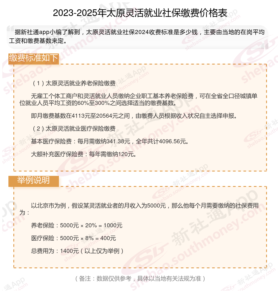 据新社通app数据显示,太原灵活就业养老保险缴费基数2024-2025年最新标准如下: