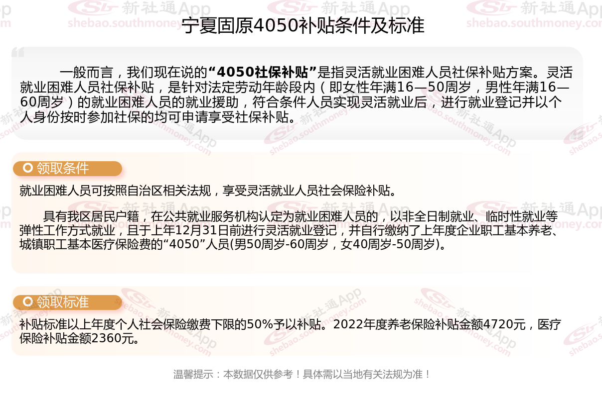 二、宁夏固原4050社保补贴标准及条件2025年,最新如下
