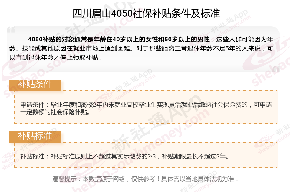 2025四川眉山灵活就业4050社保补贴是一项面向特定年龄段的就业困难人群的社会保险补贴。