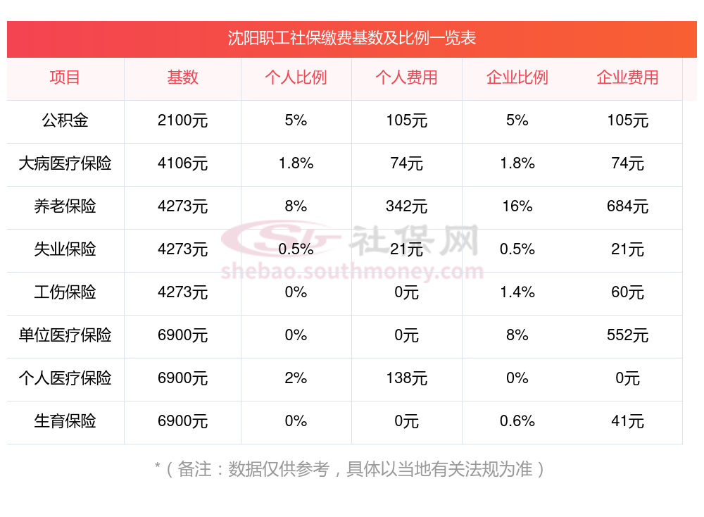 2025年沈阳社保缴费多少钱?下表是2024-2025年沈阳社保费用明细参考,新社通app-社保缴费查询工具提供的最新数据如下: