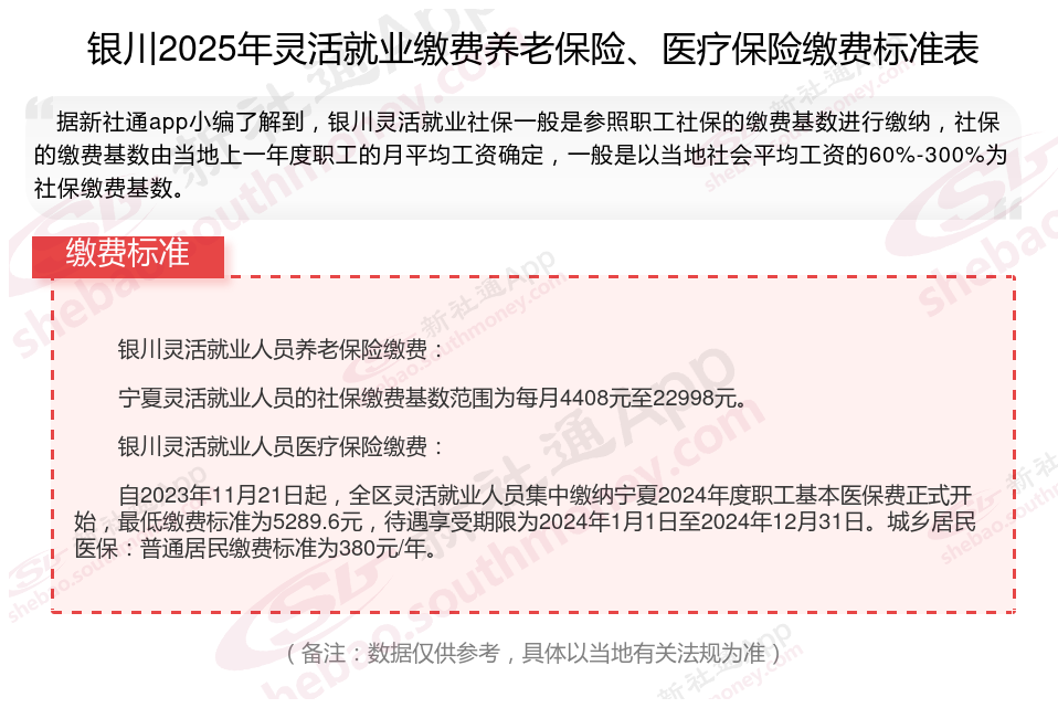 一、银川灵活就业人员社保缴费基数2024-2025年最新标准是多少?灵活就业社保缴费待遇是怎样的?