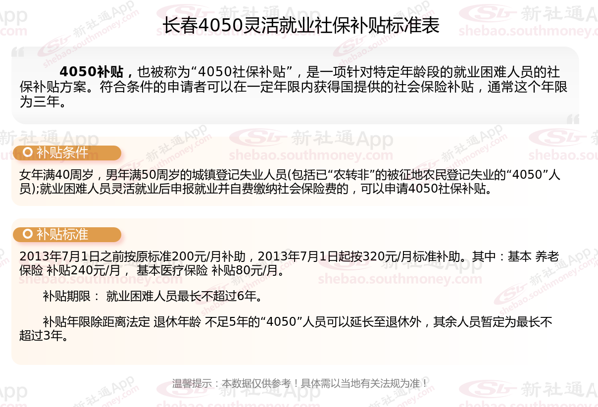 二、2025年长春4050社保补贴标准及条件(4050社保补贴多少钱?)