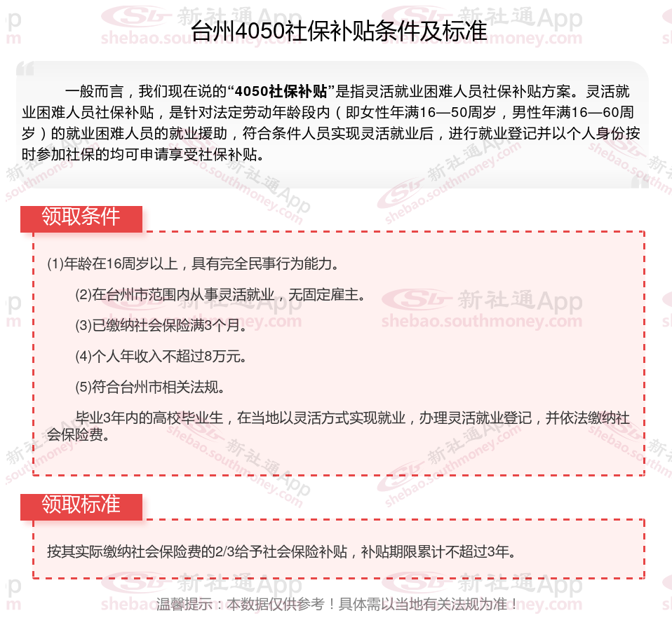 二、台州4050社保补贴标准及条件2025年最新消息