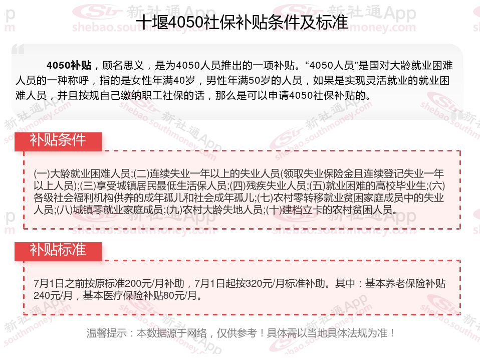 2025十堰4050补贴主要针对的是年龄在40岁以上的女性和50岁以上的男性,这些人群通常因为年龄较大而面临就业困难。