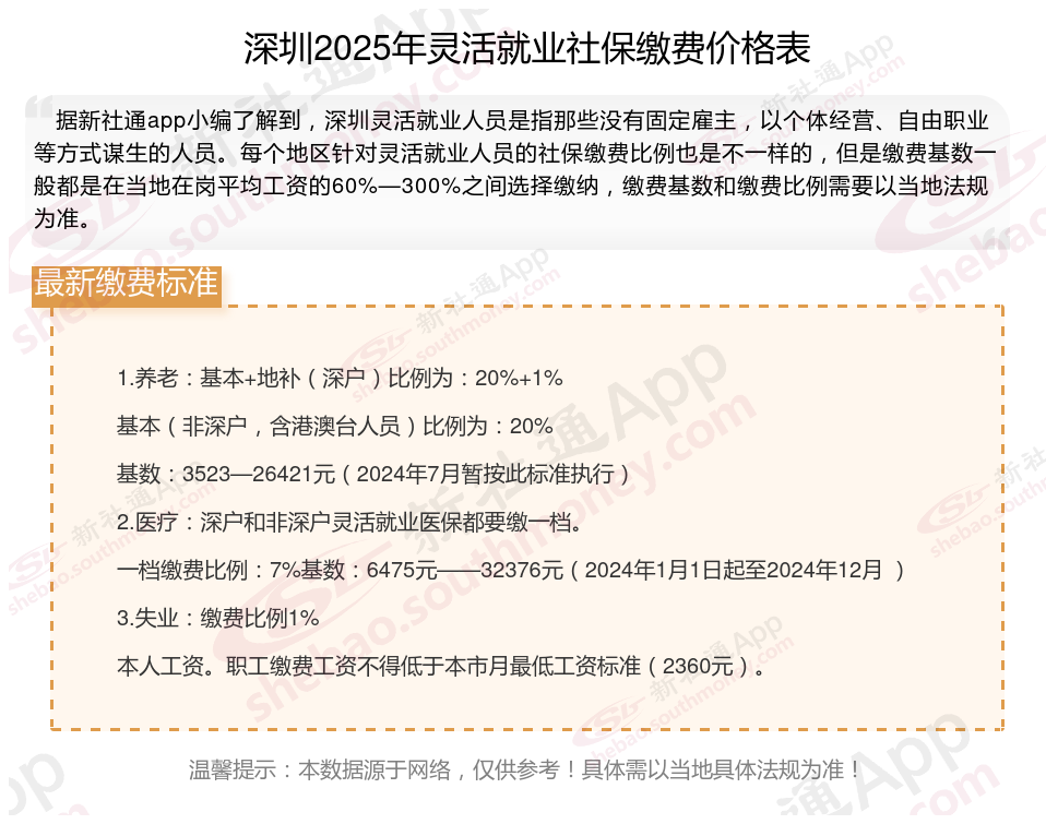 一、2025年深圳灵活就业社保缴费标准表 深圳灵活就业社保多少钱一个月?