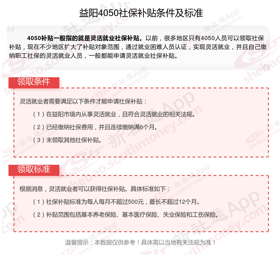 二、2025年益阳4050社保补贴标准及条件,最新如下: