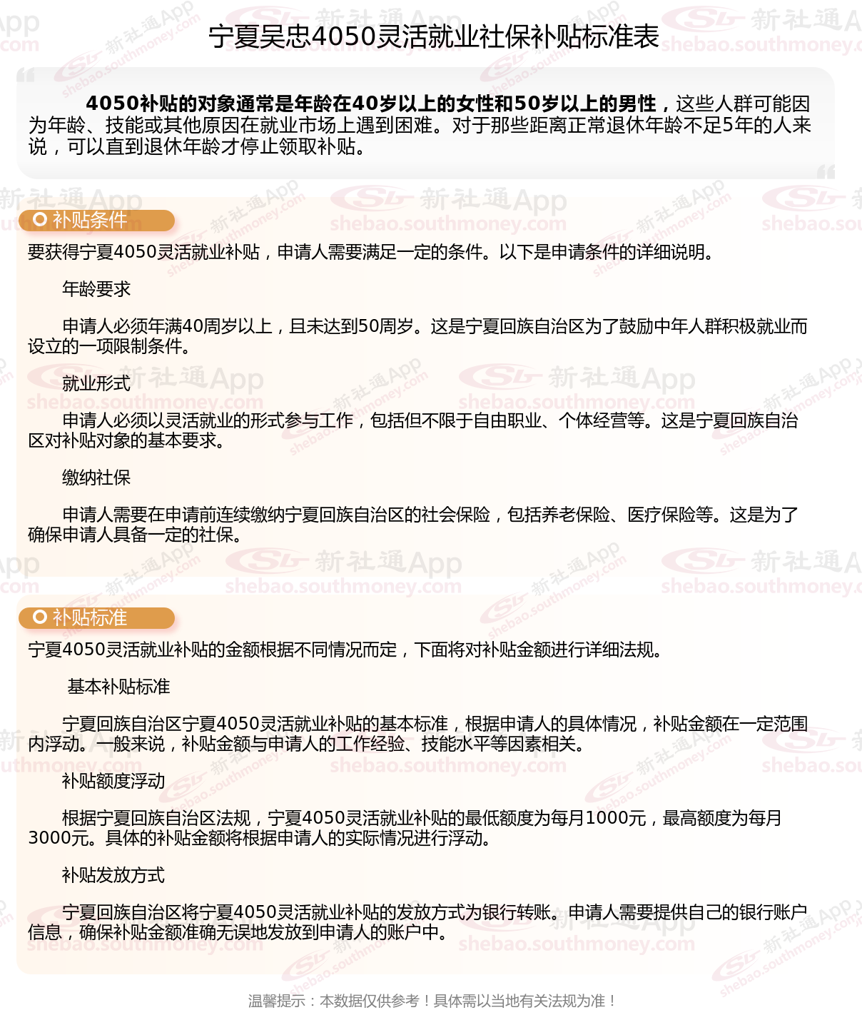 一、宁夏吴忠灵活就业4050社保补贴标准和条件是什么?