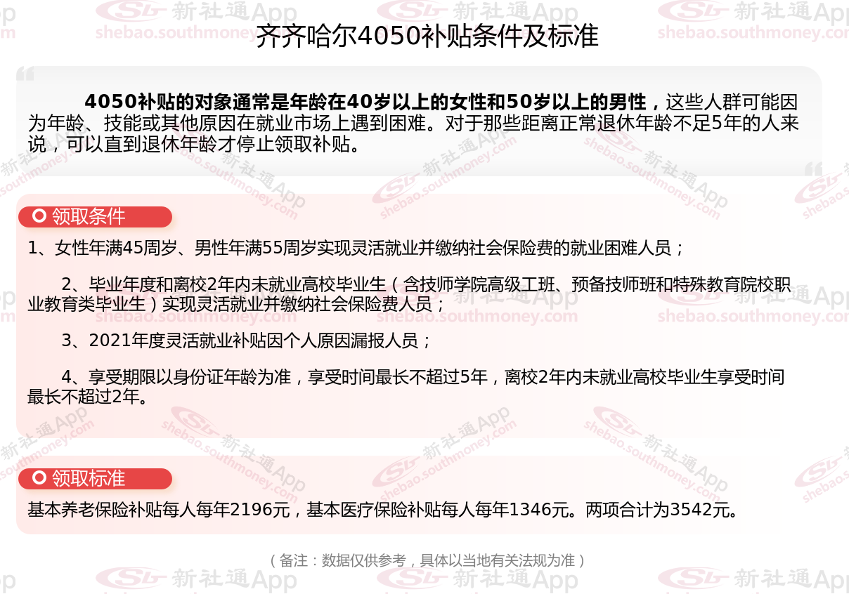 一、齐齐哈尔4050社保补贴标准及条件是多少?
