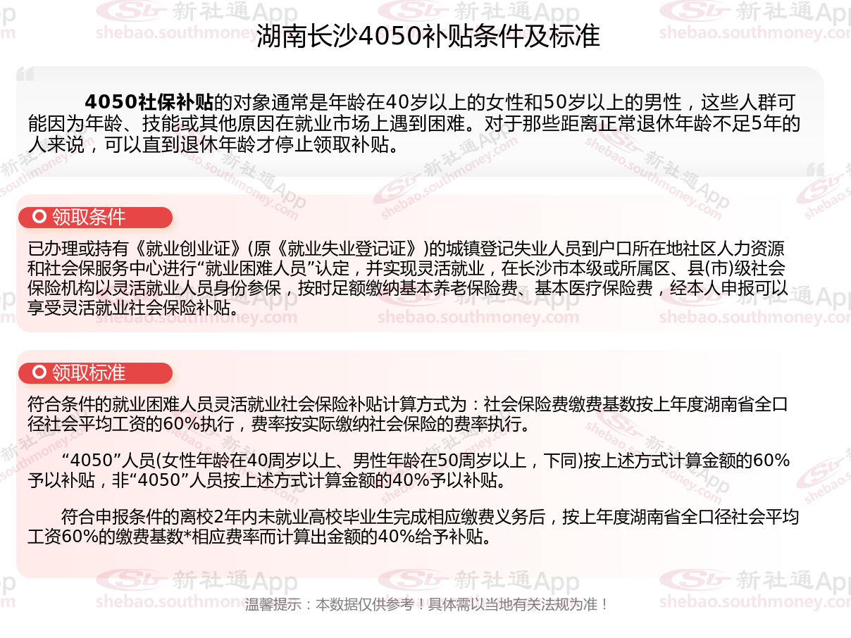 2025湖南长沙4050补贴主要针对的是年龄在40岁以上的女性和50岁以上的男性,这些人群通常因为年龄较大而面临就业困难。
