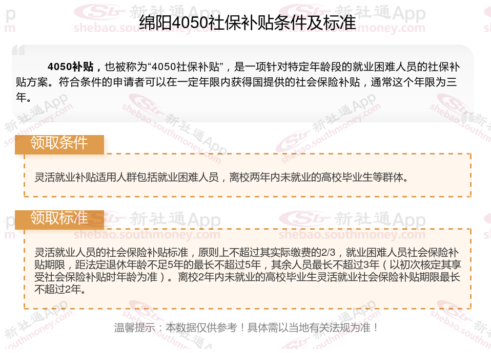 二、2025年绵阳4050社保补贴标准是多少?领取条件是什么?