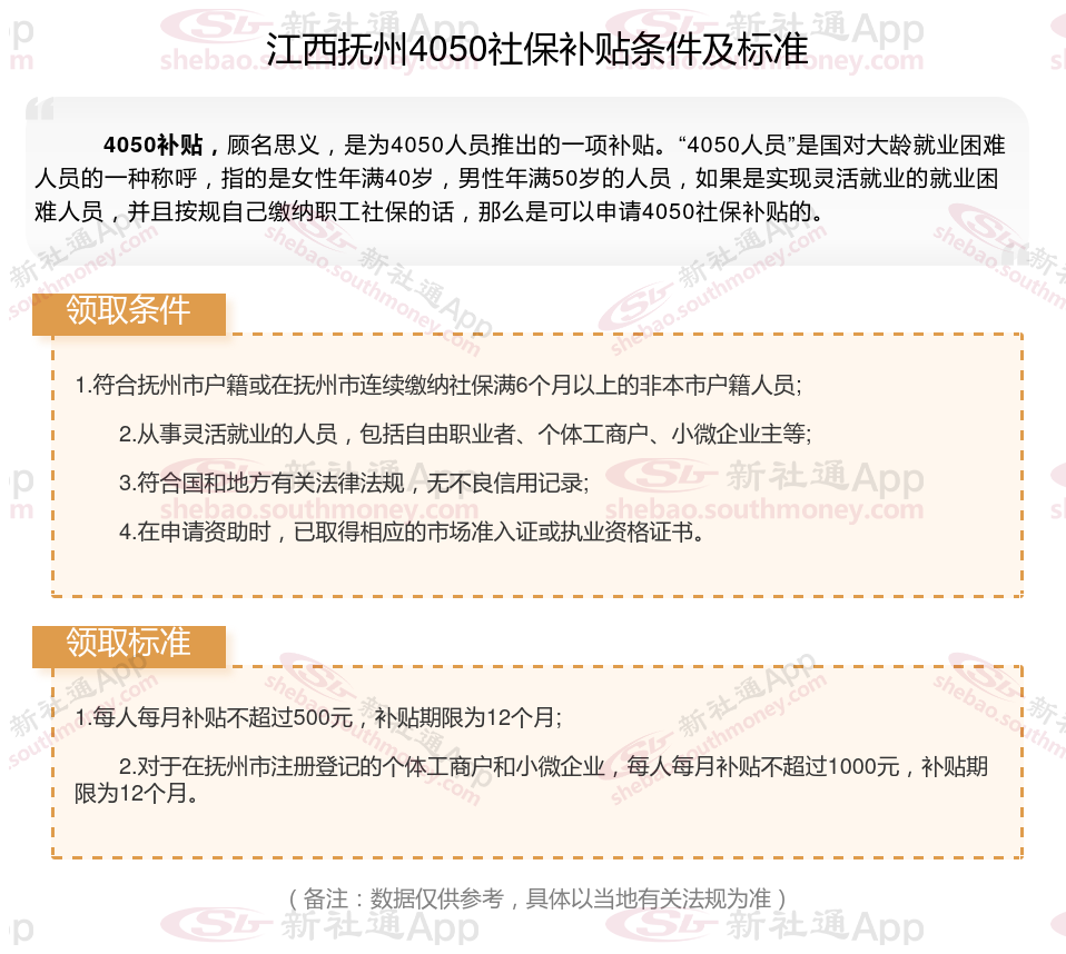 2025江西抚州灵活就业4050社保补贴是一项面向特定年龄段的就业困难人群的社会保险补贴。