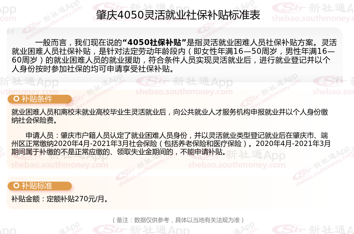 一、2023-2024年肇庆4050灵活就业社保补贴标准及条件