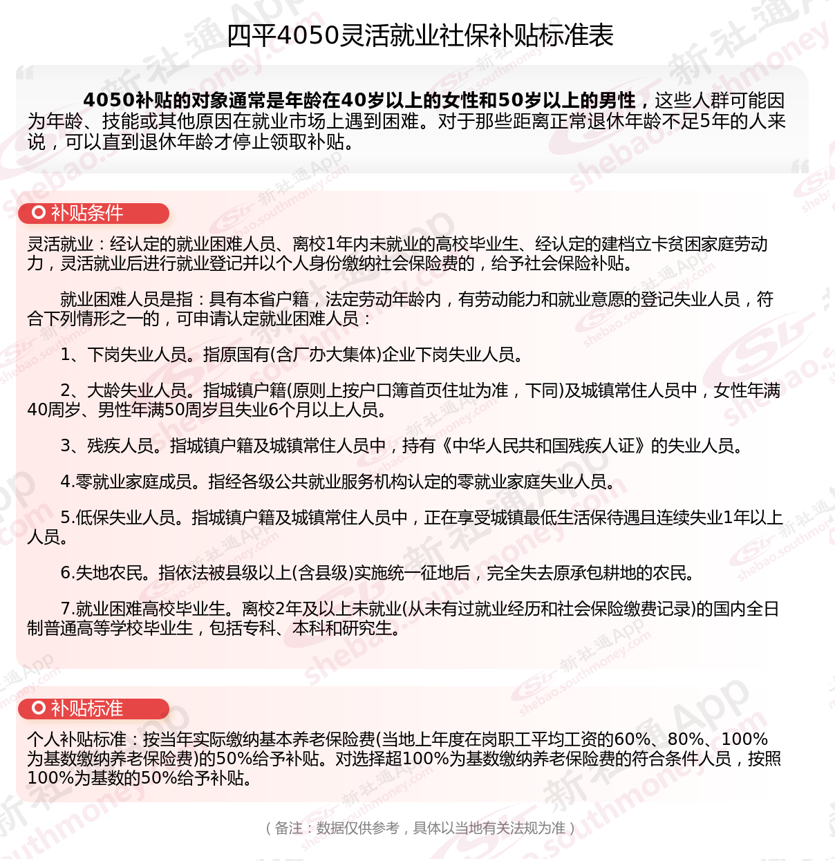 二、2025年四平4050社保补贴标准及条件,最新如下: