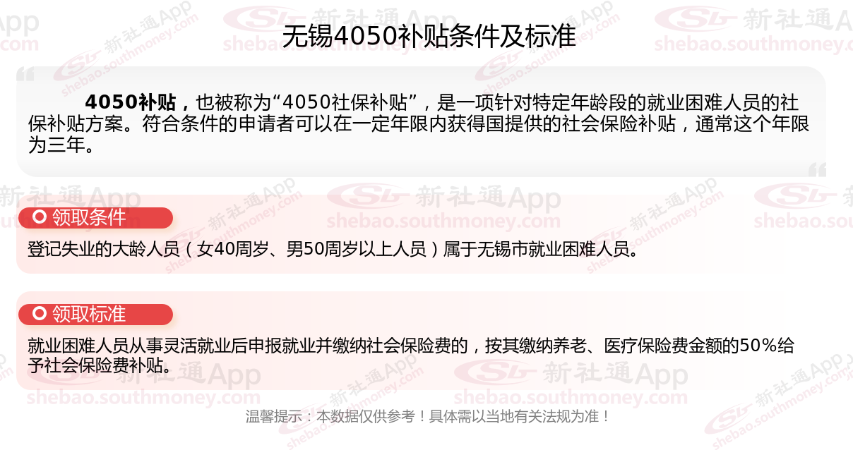 二、2025年无锡4050社保补贴标准是多少,最新4050社保补贴领取条件来了